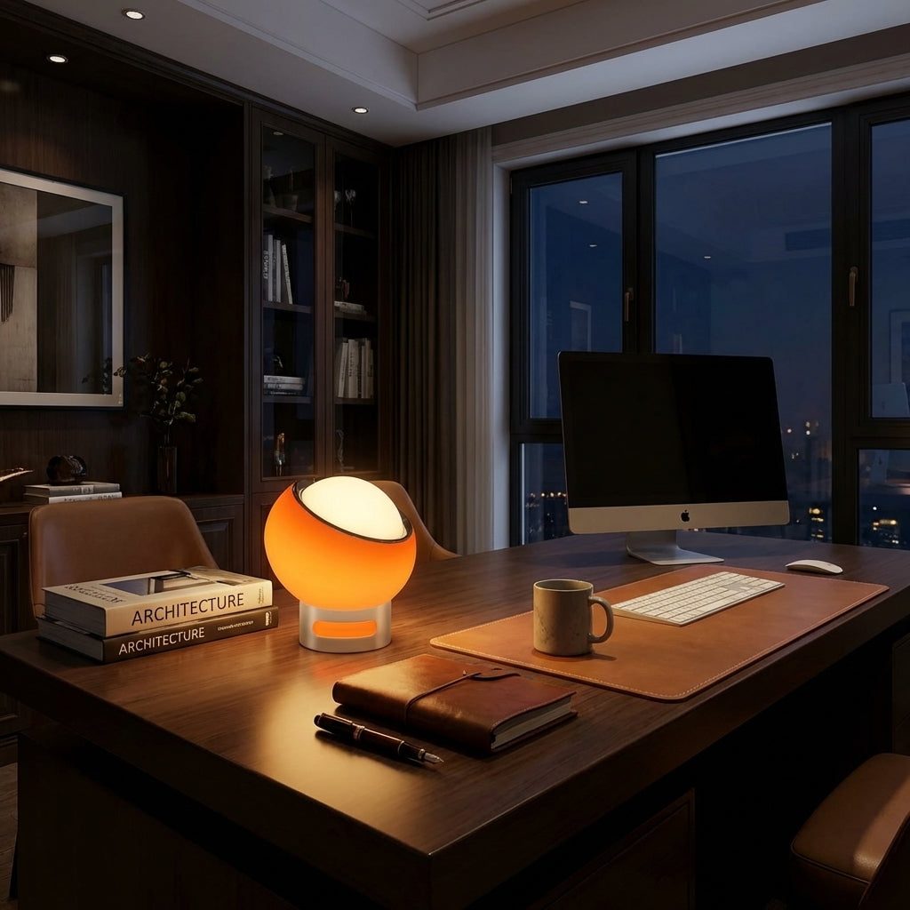 There is a particular quality of light that comes through opal glass. Not bright. Not harsh. Something closer to the glow of a candle held behind frosted paper — diffused, warm, present without demanding attention. The AURO Orbe is built around that quality.