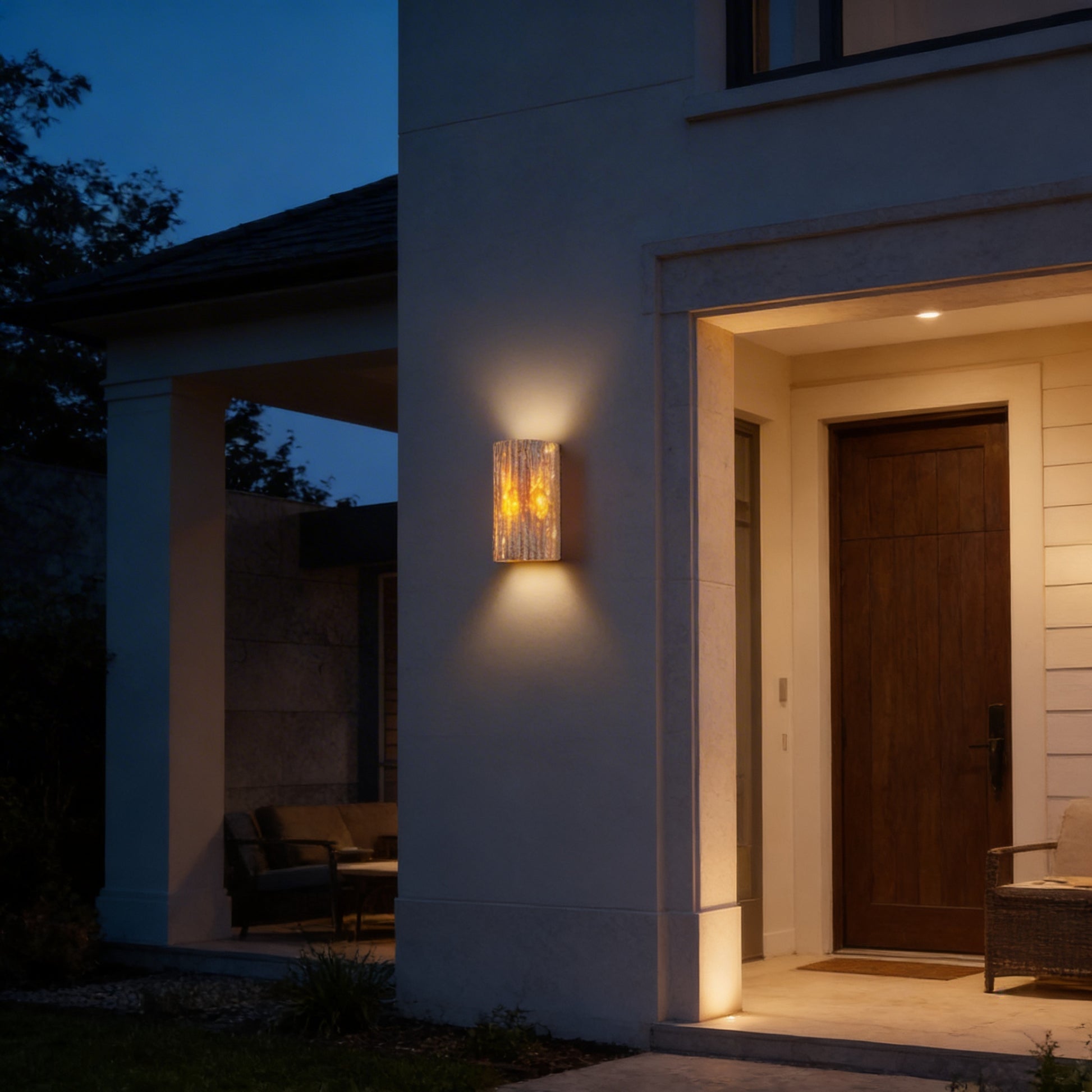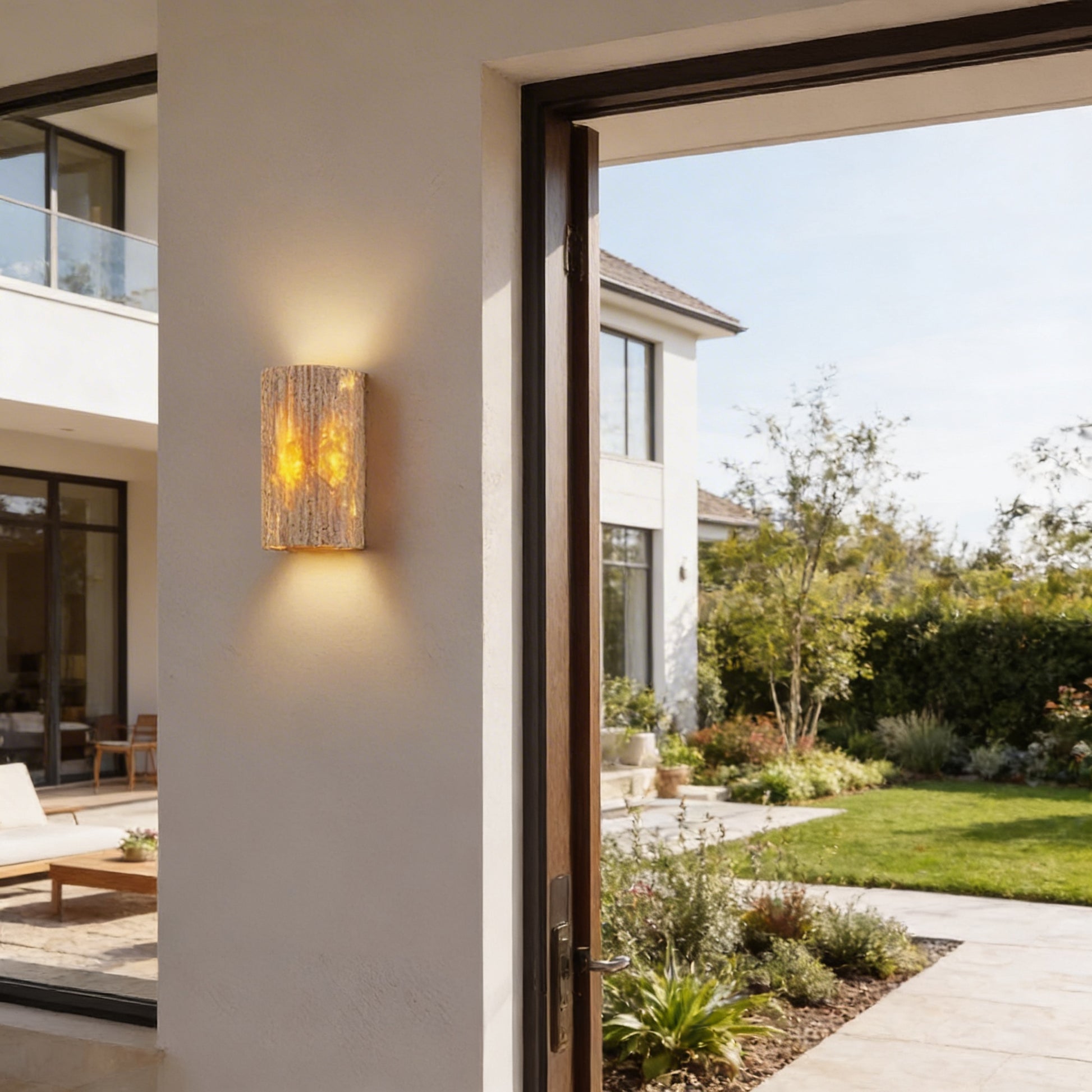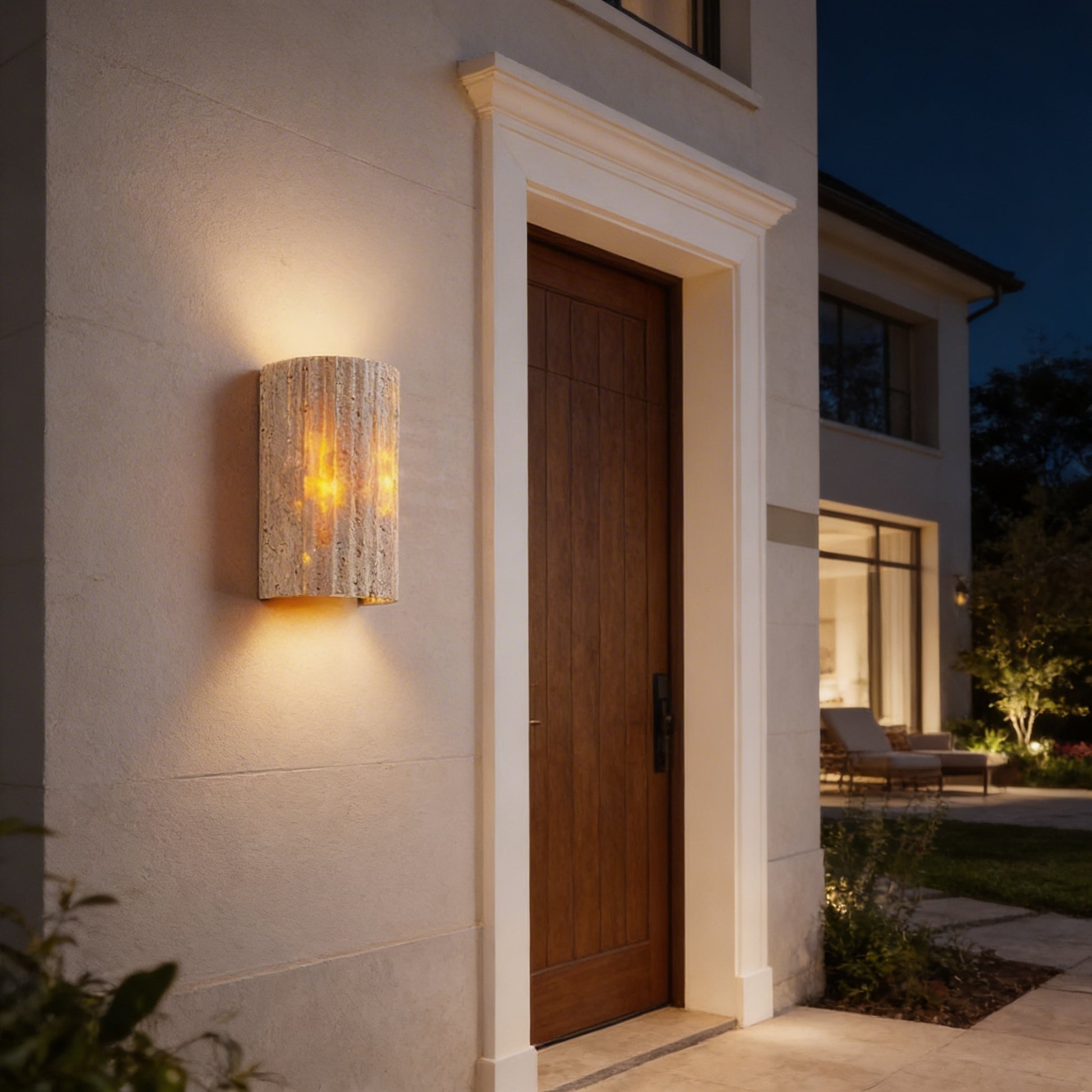 There is a quality of light that only stone can hold. The AURO Kiro is a travertine cylinder — ribbed, warm, and carved from genuine yellow cave stone — that casts a soft wash of amber upward and downward along the wall. Not a spotlight. Not a flood. A presence.