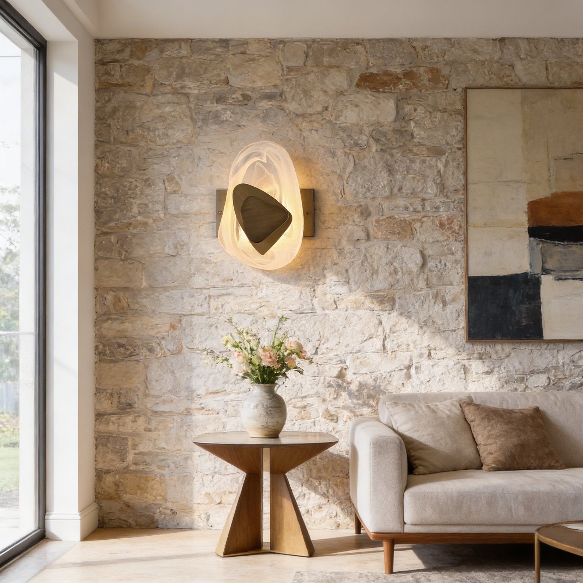 There are lights that illuminate a room, and there are lights that become the room. The AURO Ryn is the latter. Its crystal glass body — shaped by the memory of water moving across stone — catches the light and holds it differently every hour of the day. In the morning, it refracts. At dusk, it glows. At night, it pools warmth across the wall in a way that makes the whole space feel considered.