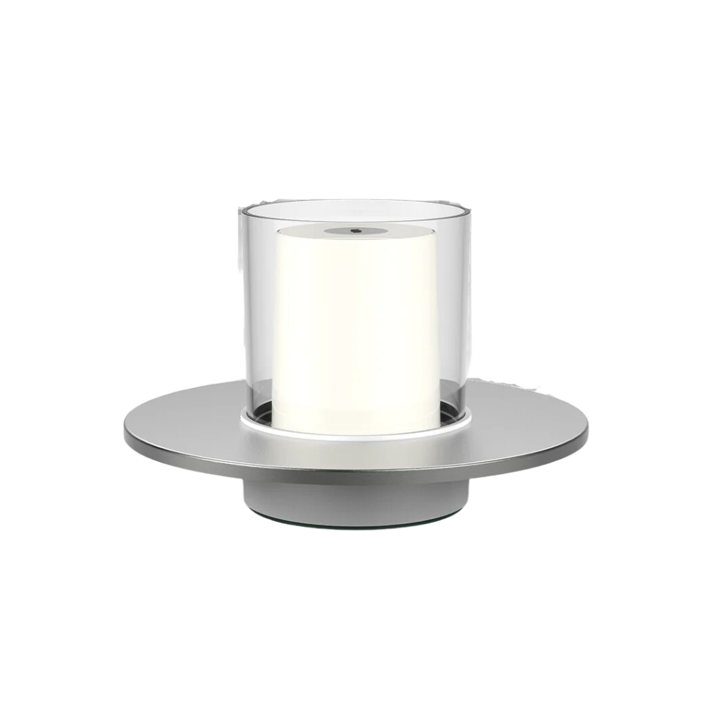 There is a lamp that disappears into the room, and there is a lamp that becomes the room. The Fyr is the second kind. Its cylindrical acrylic shade glows from within — warm, even, unhurried — and the steel body holds it with the quiet confidence of something that has been made to last. Set it on a restaurant table and the evening changes. Set it on a bedside table and the night does too.